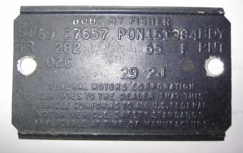 Unusual Tag from a 1969 Pontiac. This is authentic.